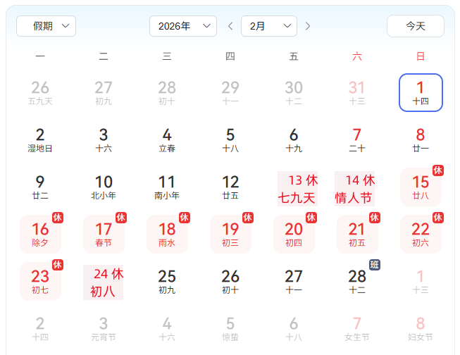 Kindly inform you that we will close during February 13th-24th, 2026 for the Spring Festival (Chinse New Year Holiday).